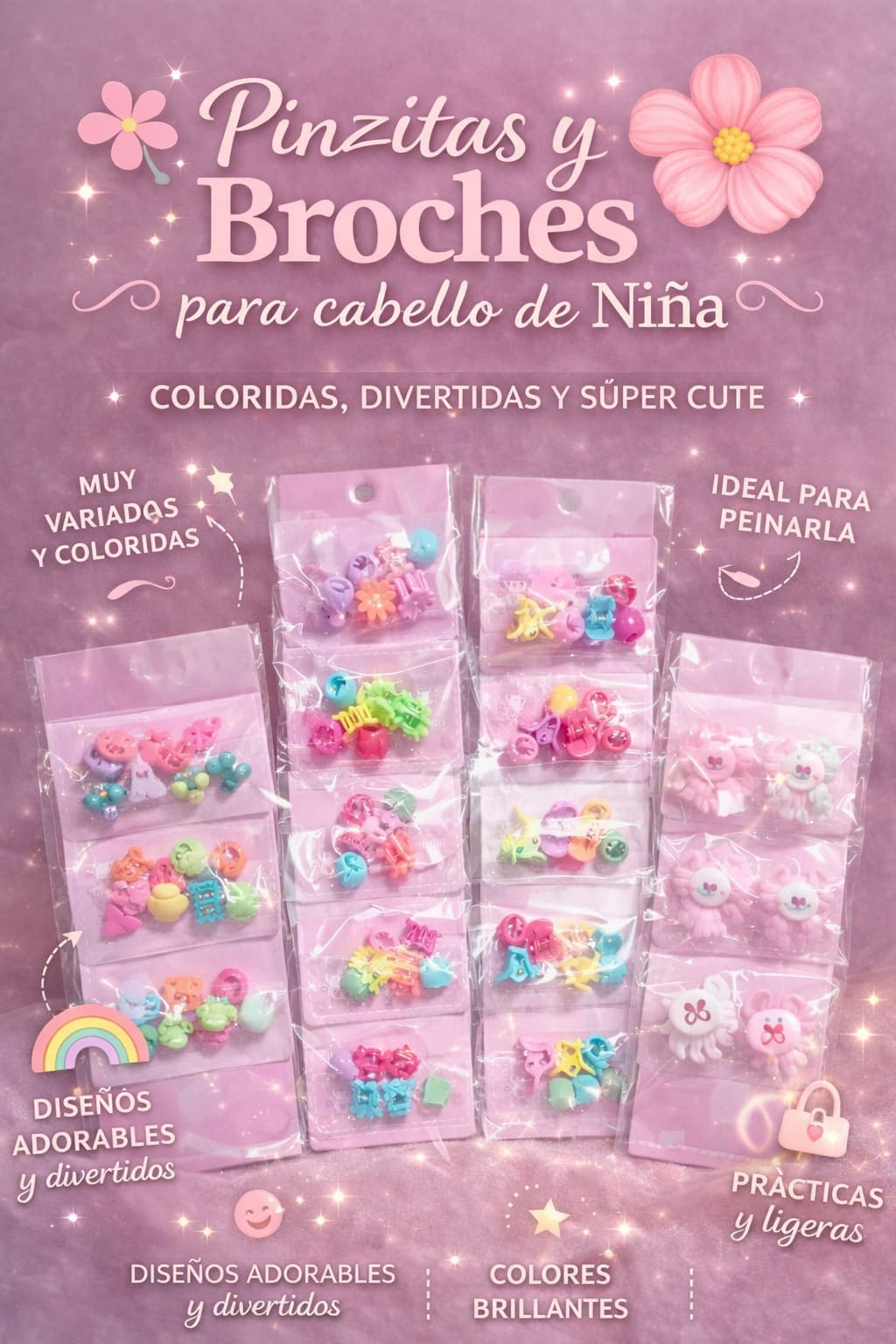 • 🌈 Dale un toque divertido y adorable al peinado con estas pinzitas y broches para cabello de niña 💖